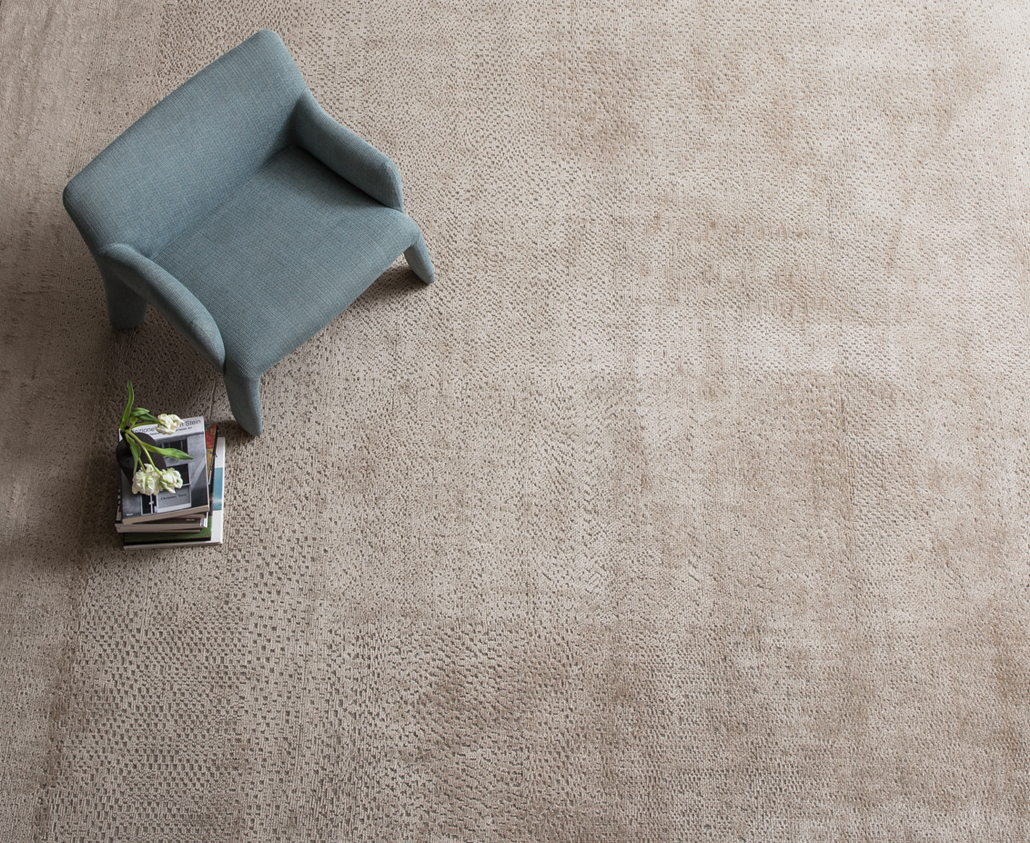 The charm of an ancient rug, with its marked individuality and well-worn look, is the source of inspiration for Random. The well-worn look is the key feature, expressing itself in an original exaltation of the texture of the rug, created with an innovative hand-woven technique, which highlights the structure of the weave.