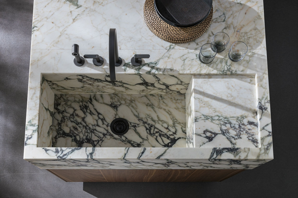 The research on materials is always oriented towards warmth and Mediterranean characters, with alternation between refined essences such as thermo oak, and sophisticated natural stones such as the new Breccia Capraia.