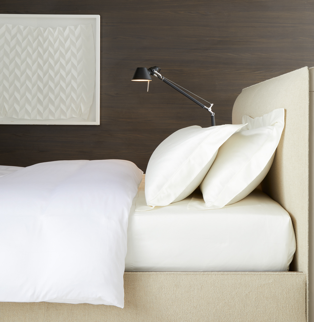 Woven by master craftsmen, Saint Cloud combines the freshness and versatility of cotton with the sheen usually associated with silk. Egyptian cotton is gleaming white and offers excellent hygroscopicity, i.e. high humidity absorption power.