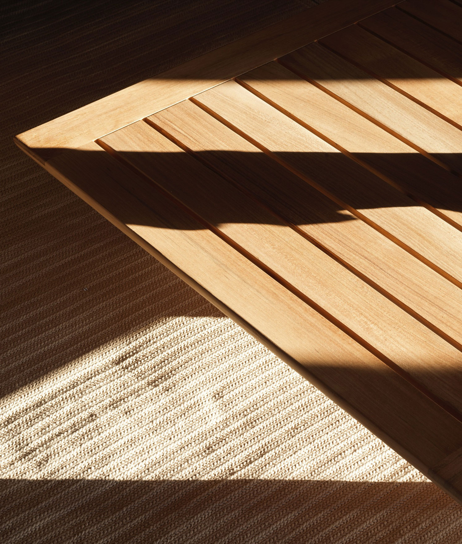 Crafted with meticulous attention to detail, the Sway outdoor coffee table by Yabu Pushelberg exudes warmth and natural charm.